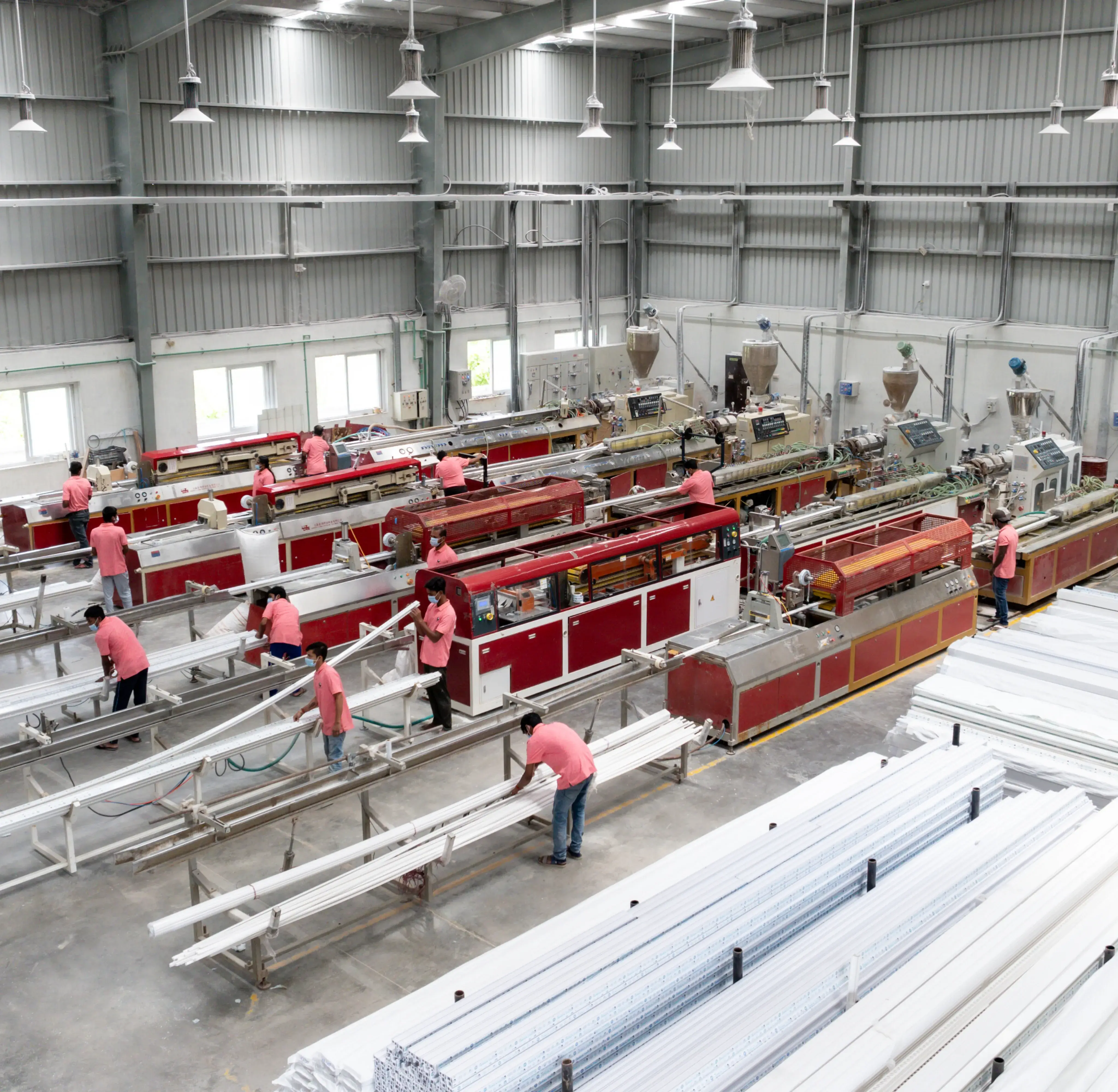 Our manufacturing facility spans 40,000 square feet and is equipped with the latest machinery and a skilled technical team to ensure our production schedule is met with guaranteed quality. We produce 300 tons of uPVC profiles and 3,000 finished windows each month.